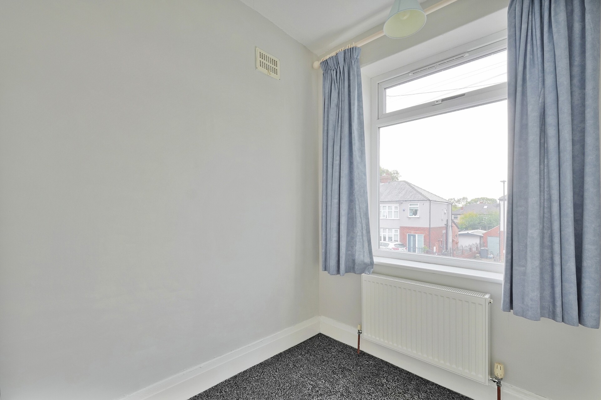 A spacious single bedroom with a front facing UPVC window.